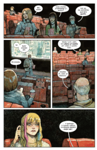 L’intero graphic novel è una riflessione sull’asse portante dell’esistenza: Eros e Thanatos. Sesso e Morte. La fine della civiltà incombe, la mortalità è palpabile. E, come dice Val, “Quando la popolazione deve contemplare la propria mortalità, torna sempre alla stessa cosa”.